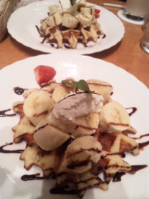 このあとクラブチームで忘年会だけど、その前に友達とワッフル食べに来た(´∀`人)